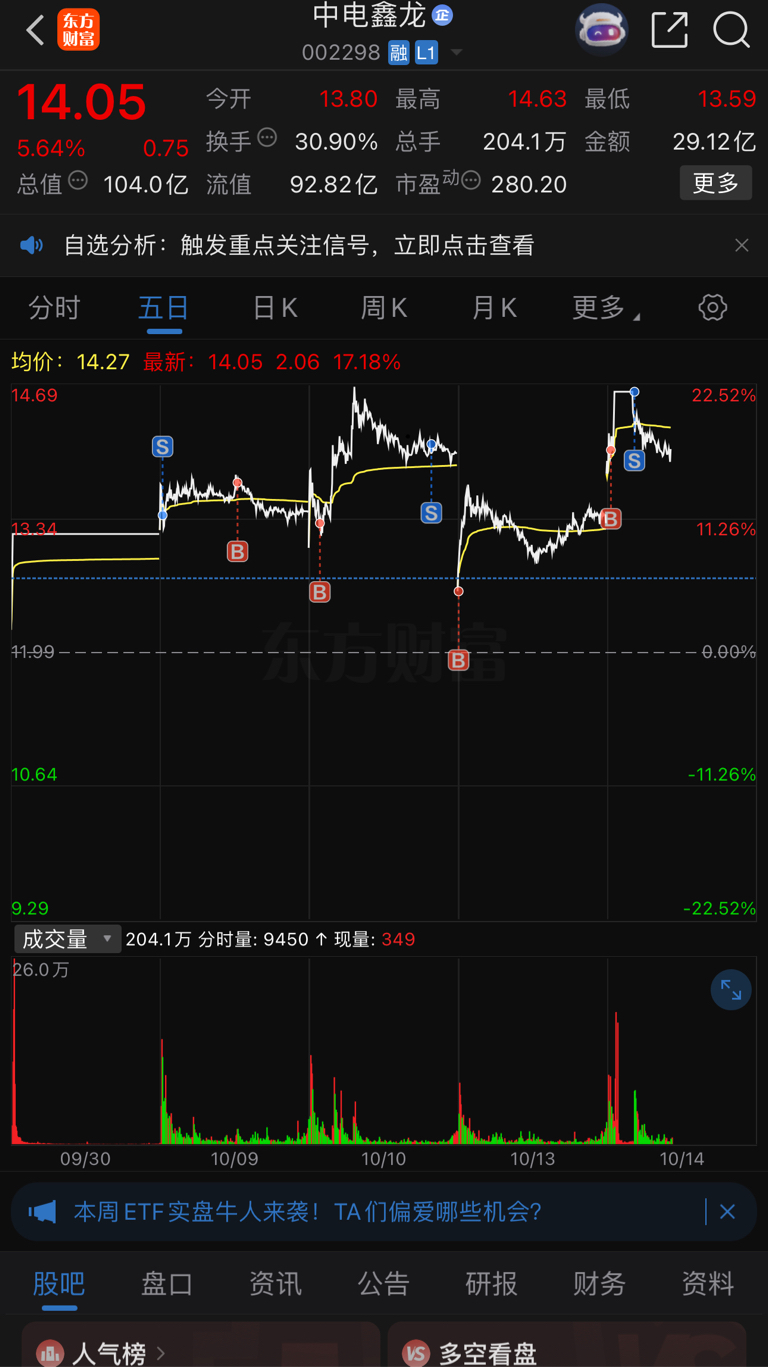 $中电鑫龙(SZ002298)$ 半山腰补仓,首次开板没动,二次开板果断卖出做T,量化吃了涨停就跑...