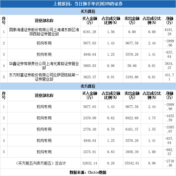 多主力现身龙虎榜,中电鑫龙换手率达42.24%(10-14)