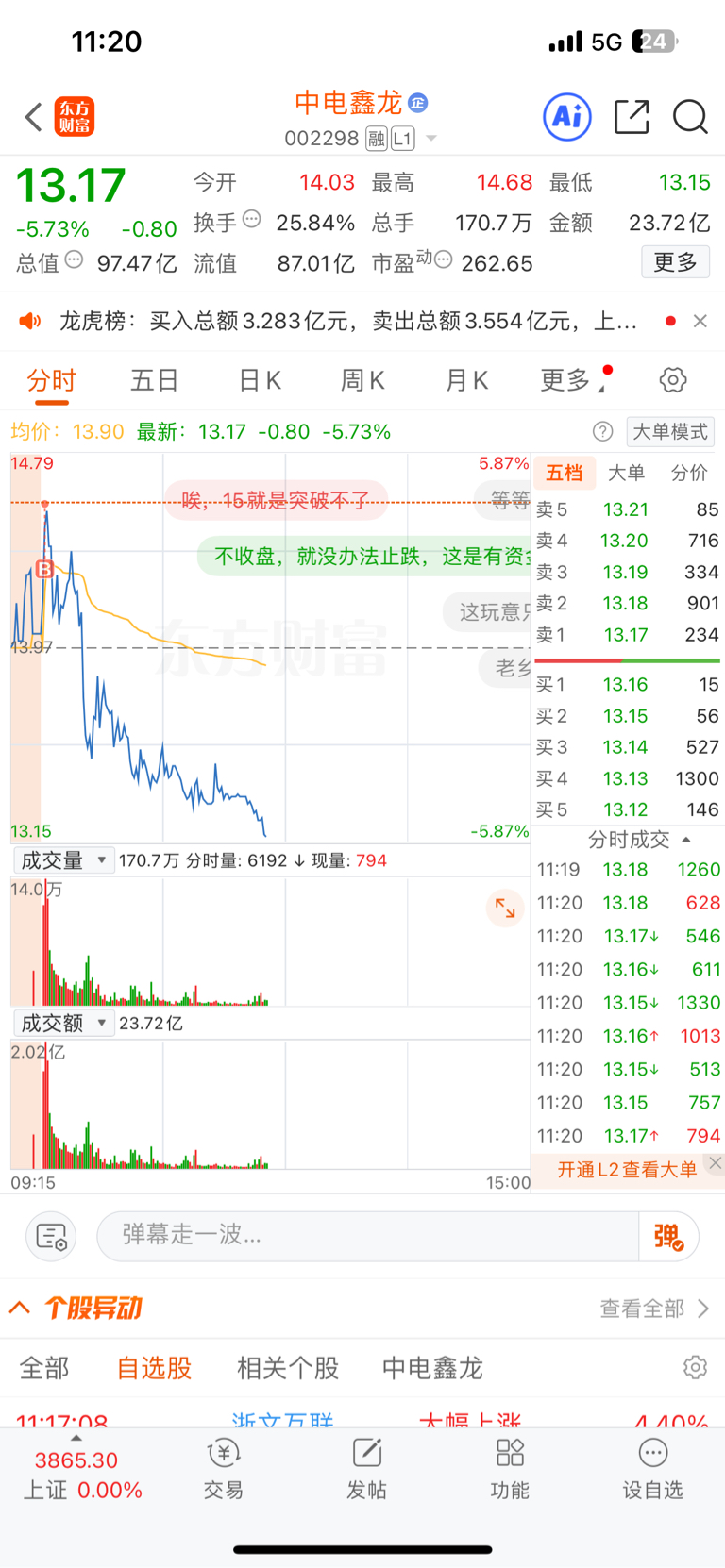 $中电鑫龙(SZ002298)$ 还能说什么呢?唉