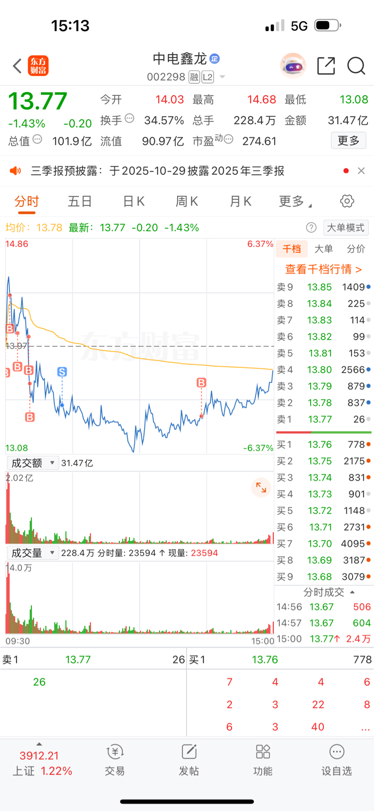 $中电鑫龙(SZ002298)$ 反T做得不要不要的