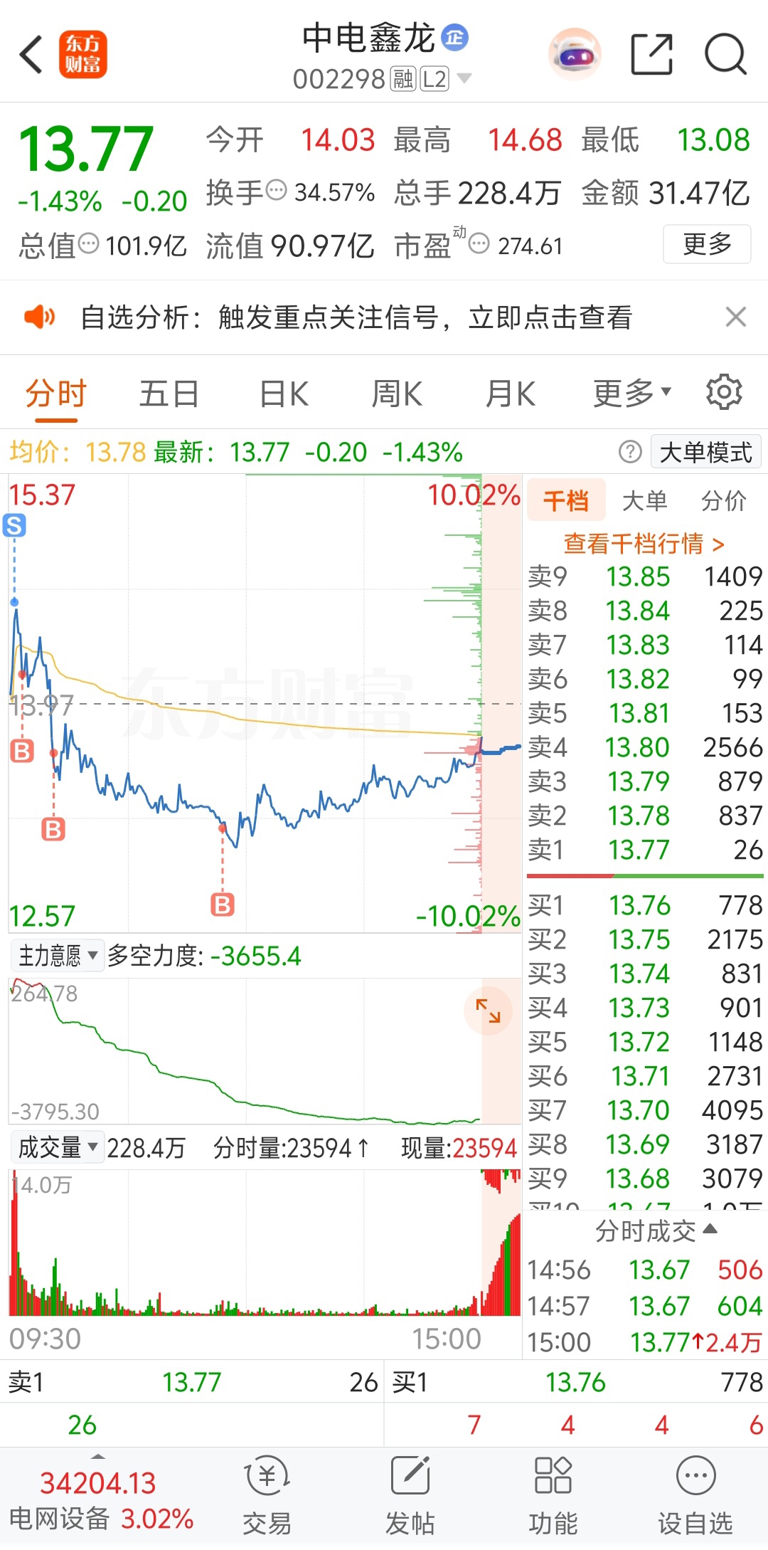 $中电鑫龙(SZ002298)$ 今天这操作不知道是福是祸,静待明天开盘