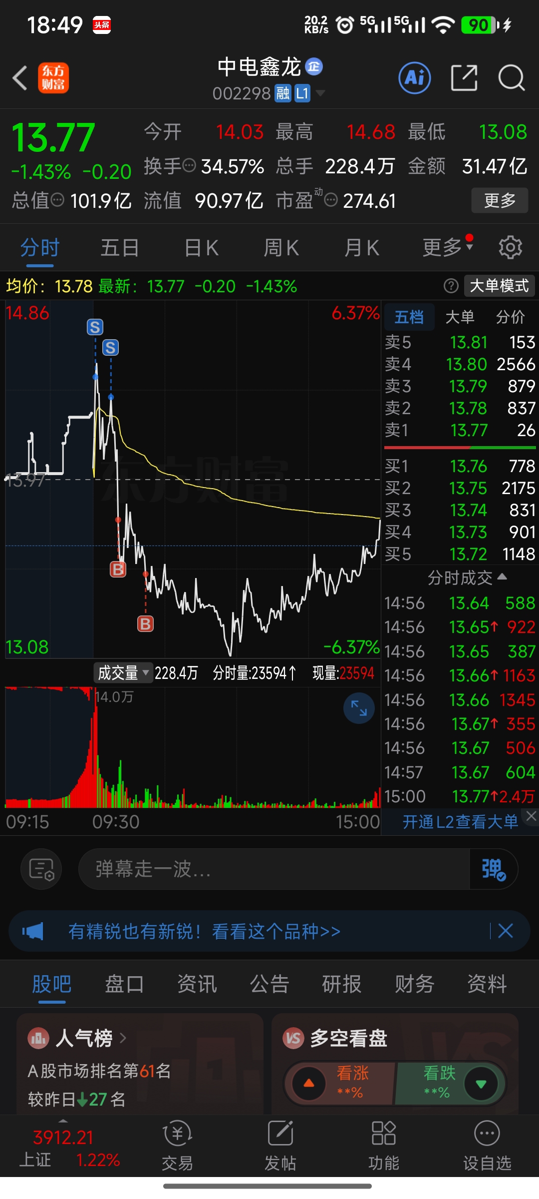 温馨提示: 1.根据《证券法》规定,禁止编造、传播虚假信息或者误导性信息,扰乱证券市场;2.用户在本社区发表的所有资料、言论等仅代表个人观点,与本网站立场无关,不对您构成任何投资建议。用户应基于自己的独立判断,自行决定证券投资并承担相应风险。《东方财富社区管理规定》
