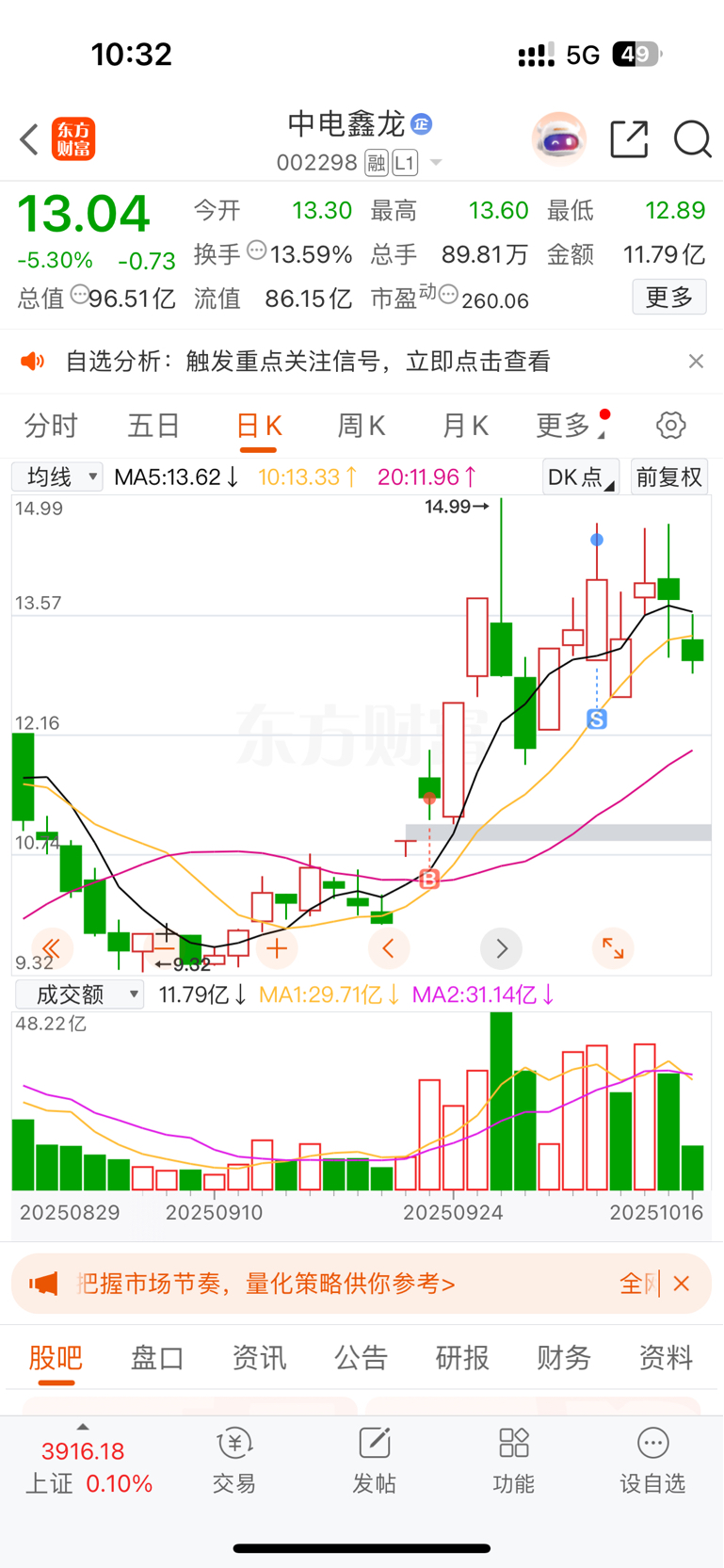 $中电鑫龙(SZ002298)$ 已经走人了,12再回来吧