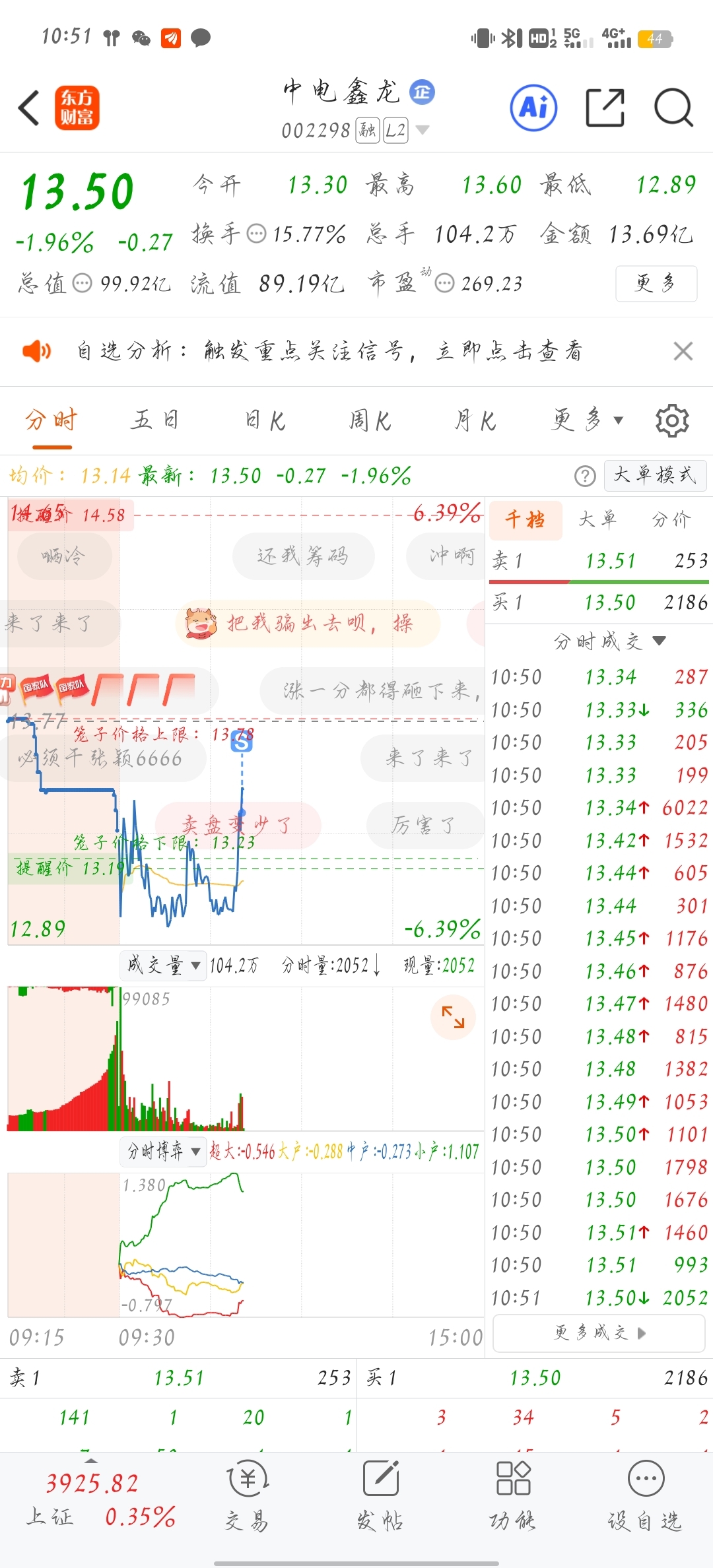 $中电鑫龙(SZ002298)$ 走早了,能让我接回来吗