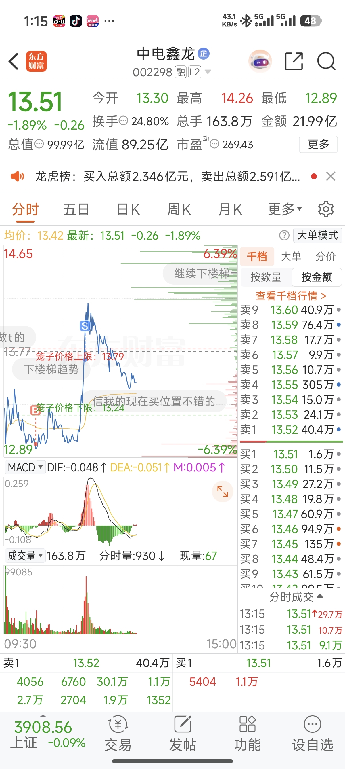 $中电鑫龙(SZ002298)$ 这股票每天做T太爽了,我现在成本半仓-2块钱了,主力怎么把我甩下车
