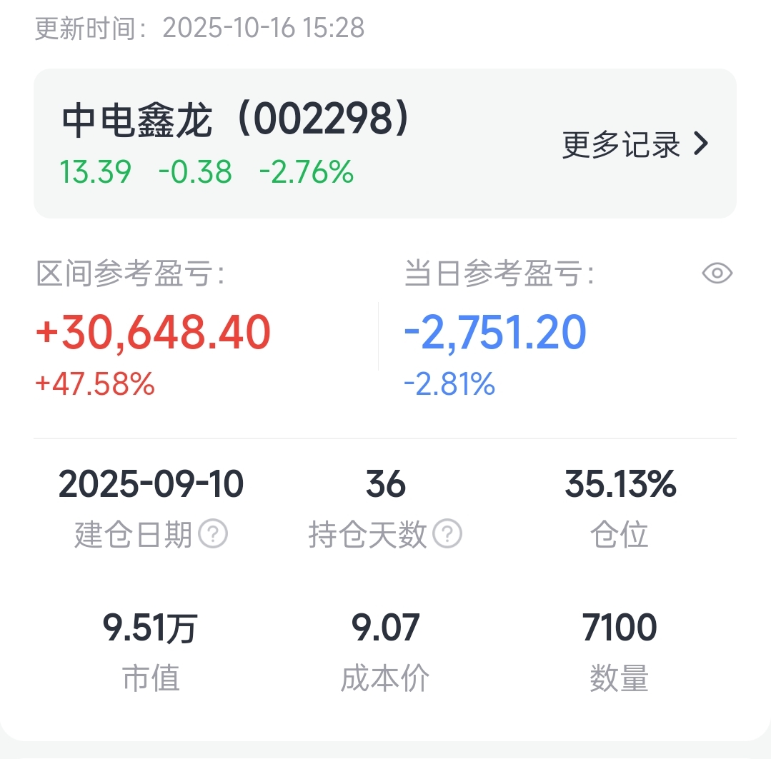 $中电鑫龙(SZ002298)$ 明天很关键,一个星期都冲不上去,均线也破了,不反包就全部清仓了,天天做T累死人了。