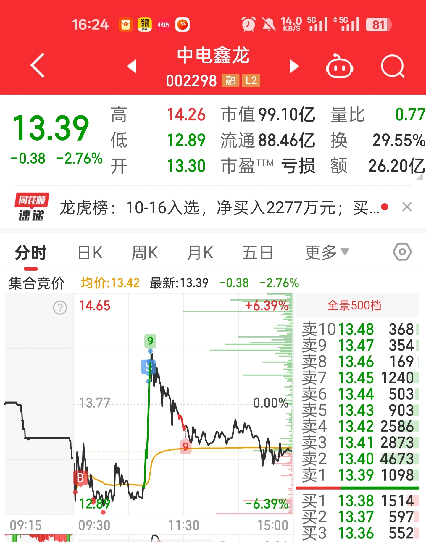 $中电鑫龙(SZ002298)$ 又是机构哈哈哈