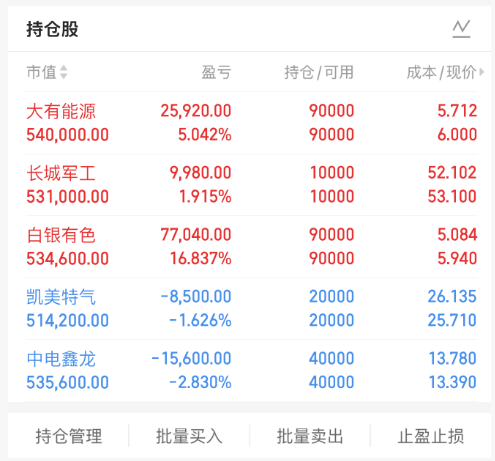 白银有色:昨日该标的涨停,股价沿着5日均线向上拉升中,可继续持股待涨,但是得注意一点就是关注一下外围QH贵金属走势情况,趋势是没问题,问题就是担心股价偏离5日均线太多会均值回归冲高回落,目标价不变看到7.85位置附近。