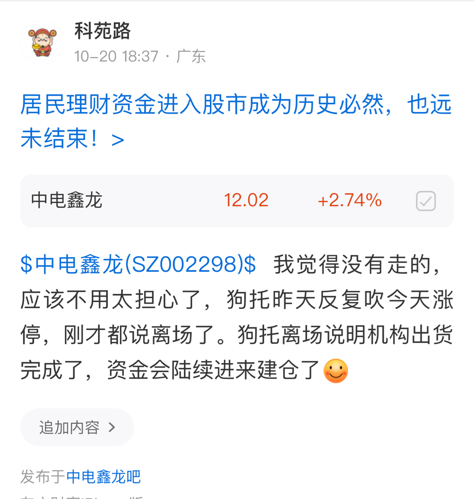 $中电鑫龙(SZ002298)$ 狗托离开,马上就有机构买回来