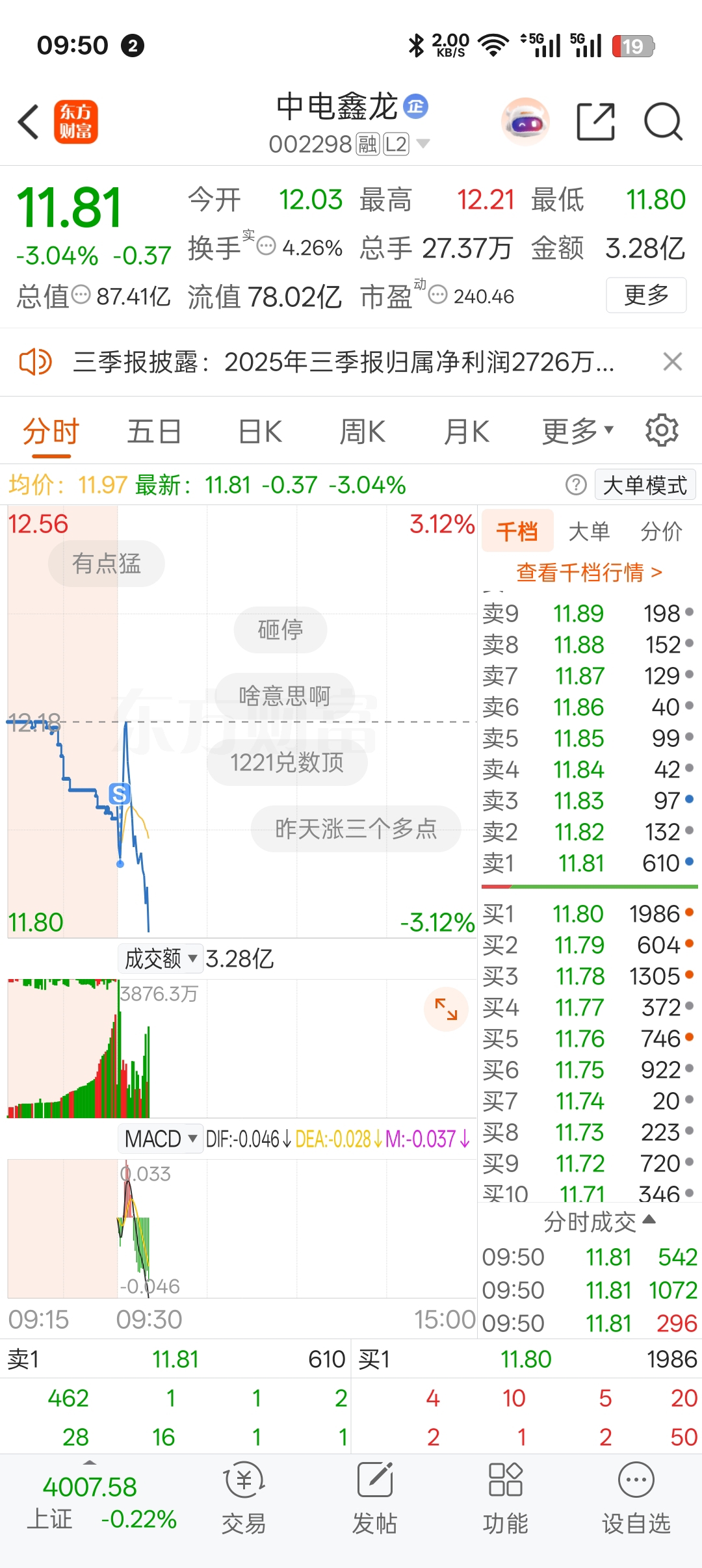 $中电鑫龙(SZ002298)$ 刚开盘跑在最低点还挺伤心的,现在好多了