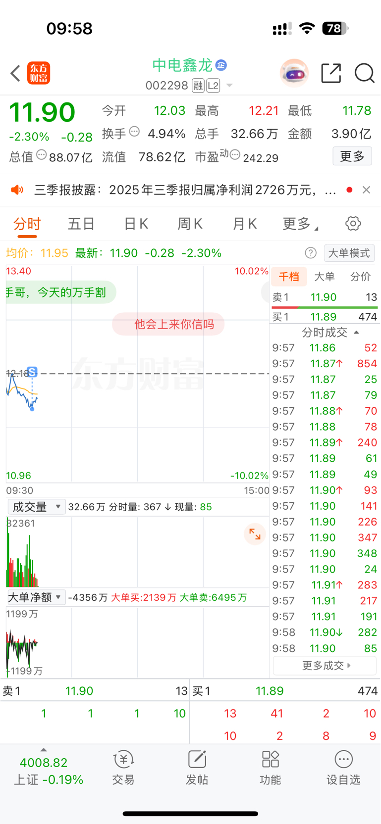 $中电鑫龙(SZ002298)$ 就盯着我手里那几手?