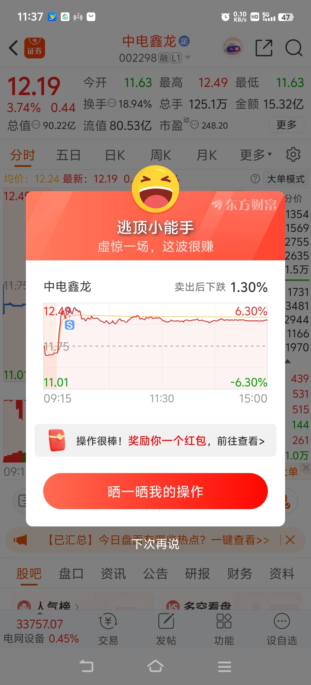 $中电鑫龙(SZ002298)$ 今日卖在次高点,哈哈