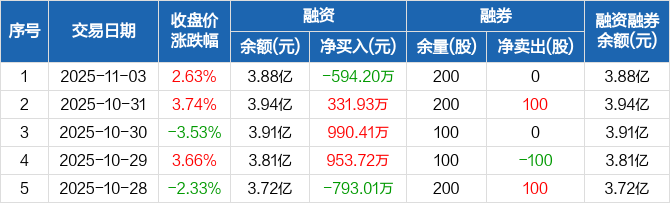 中电鑫龙:融资净偿还594.2万元,融资余额3.88亿元(11-03)