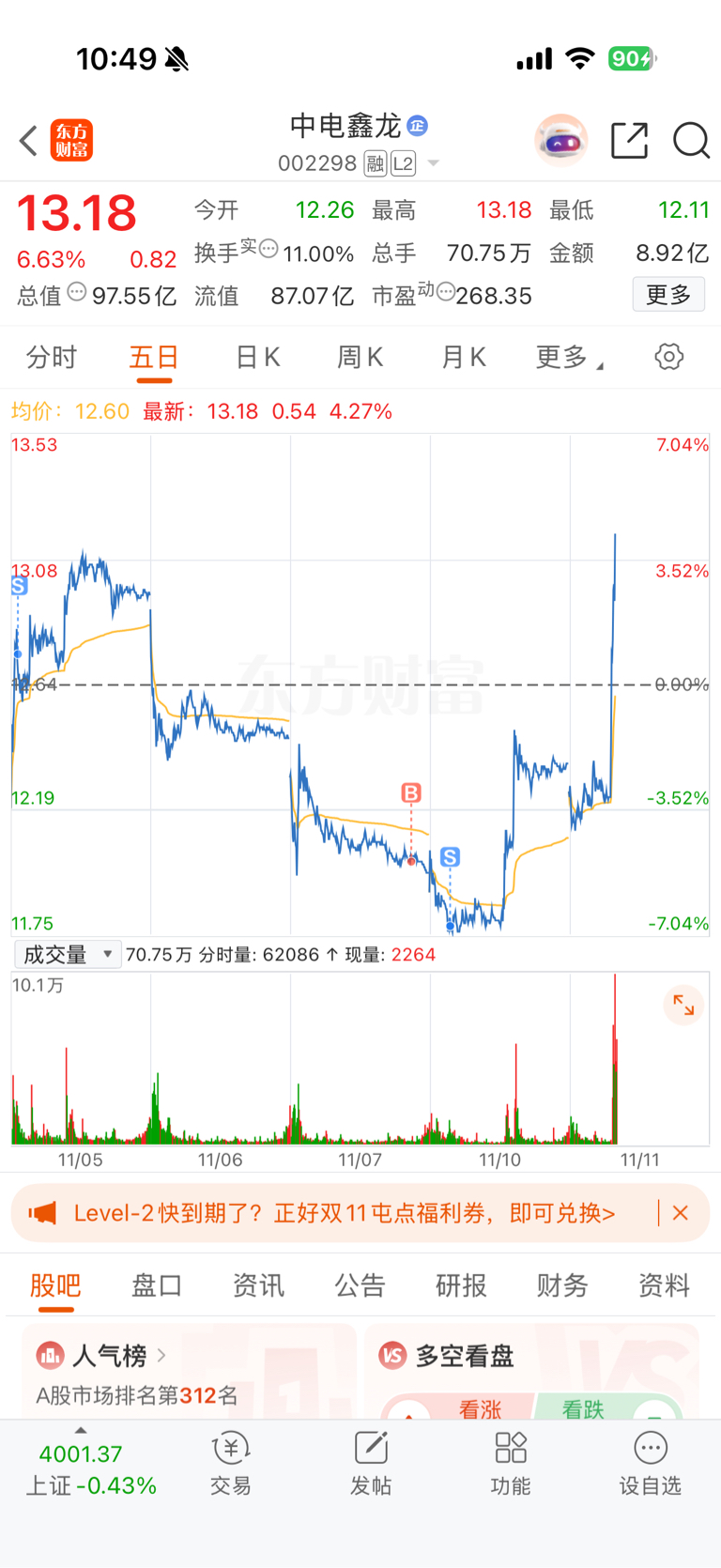 $中电鑫龙(SZ002298)$ 还得是我,这一天能差十几个点