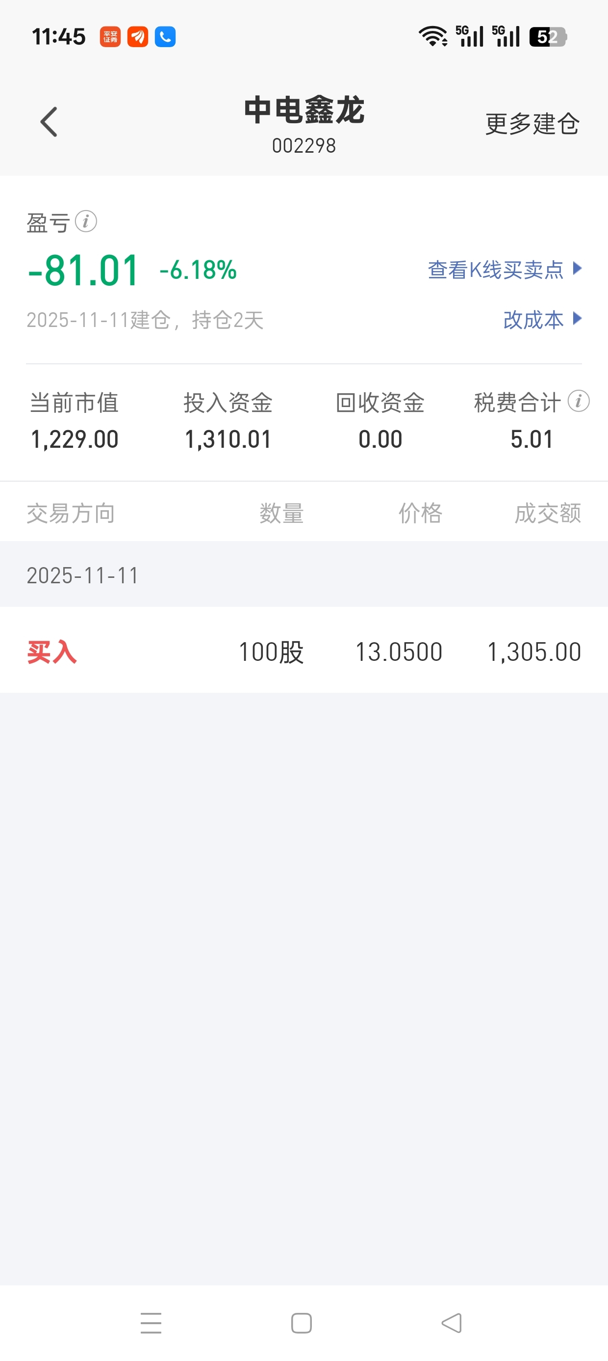 $中电鑫龙(SZ002298)$ 亏了快100块钱了