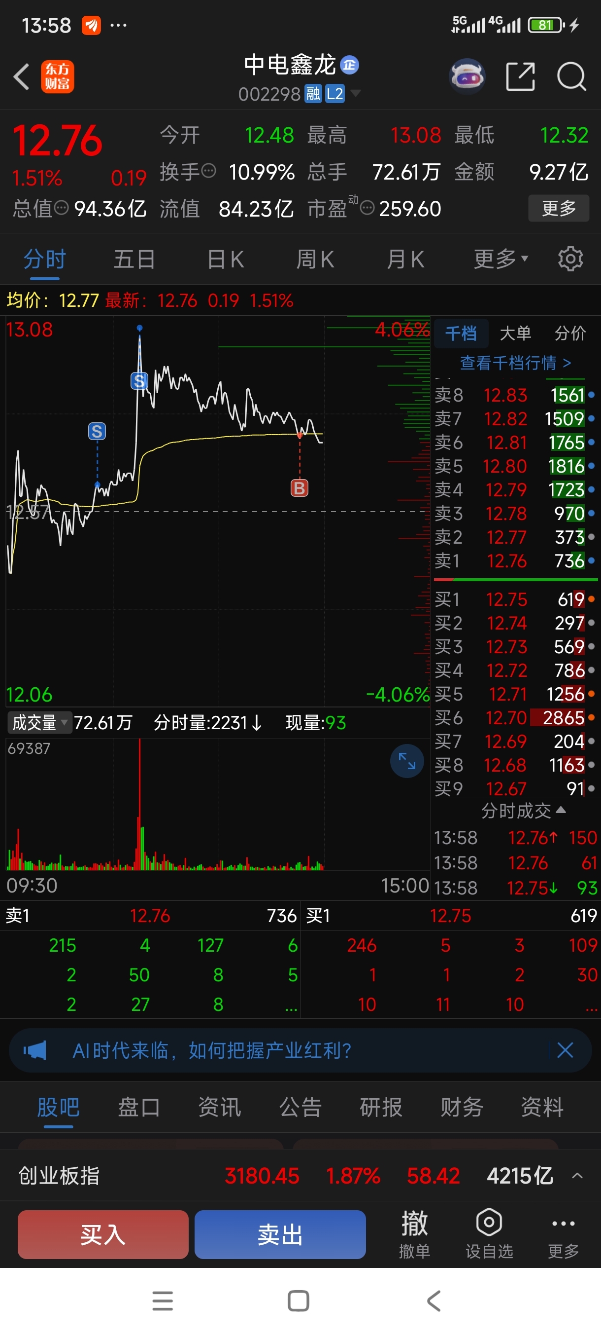 $中电鑫龙(SZ002298)$ 小T一把,干s够庄