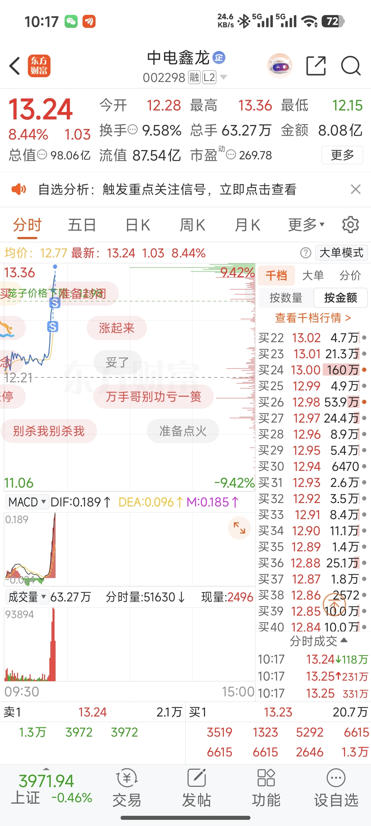 $中电鑫龙(SZ002298)$ 走了,留下发财,谢谢主力!
