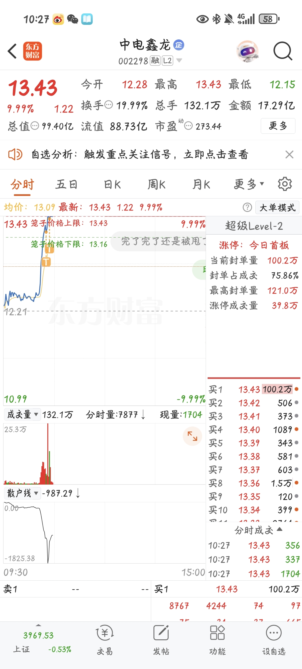 $中电鑫龙(SZ002298)$ 炸板瞬间t好爽