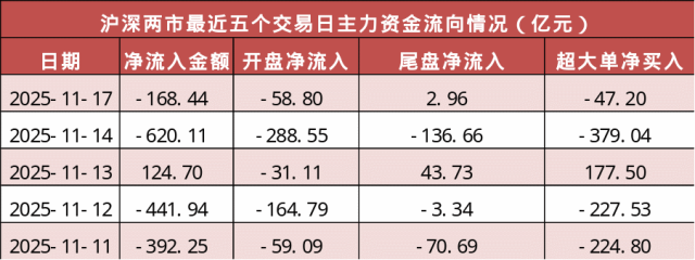 今日沪深两市主力资金开盘净流出58.8亿元,尾盘净流入2.96亿元,两市全天主力资金净流出168.44亿元。