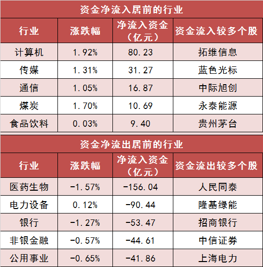 1.两市主力资金净流出近170亿元