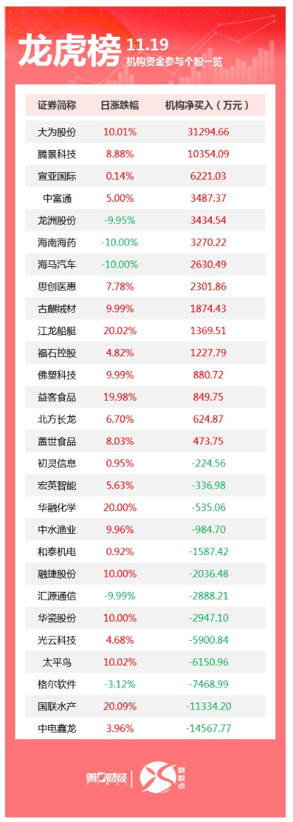 龙虎榜丨机构今日买入这15股,卖出中电鑫龙1.46亿元