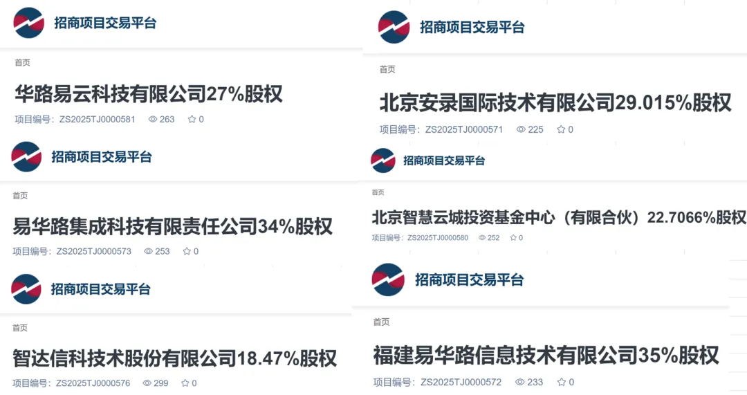 近期,北京易华录信息技术股份有限公司在天津产权交易中心,集中挂牌转让其参股的十余家公司全部股权,挂牌结束时间2026年10月。国资背景的企业进行资产转让一直是敏感地带,一般情况下,如果资产的质地还不错都会由地方国资或体系内兄弟单位接手。易华录此次公开招拍挂意味着公司对此前进行的一系列投资行为做个了结,迫切需要切割不良资产并回血续命。