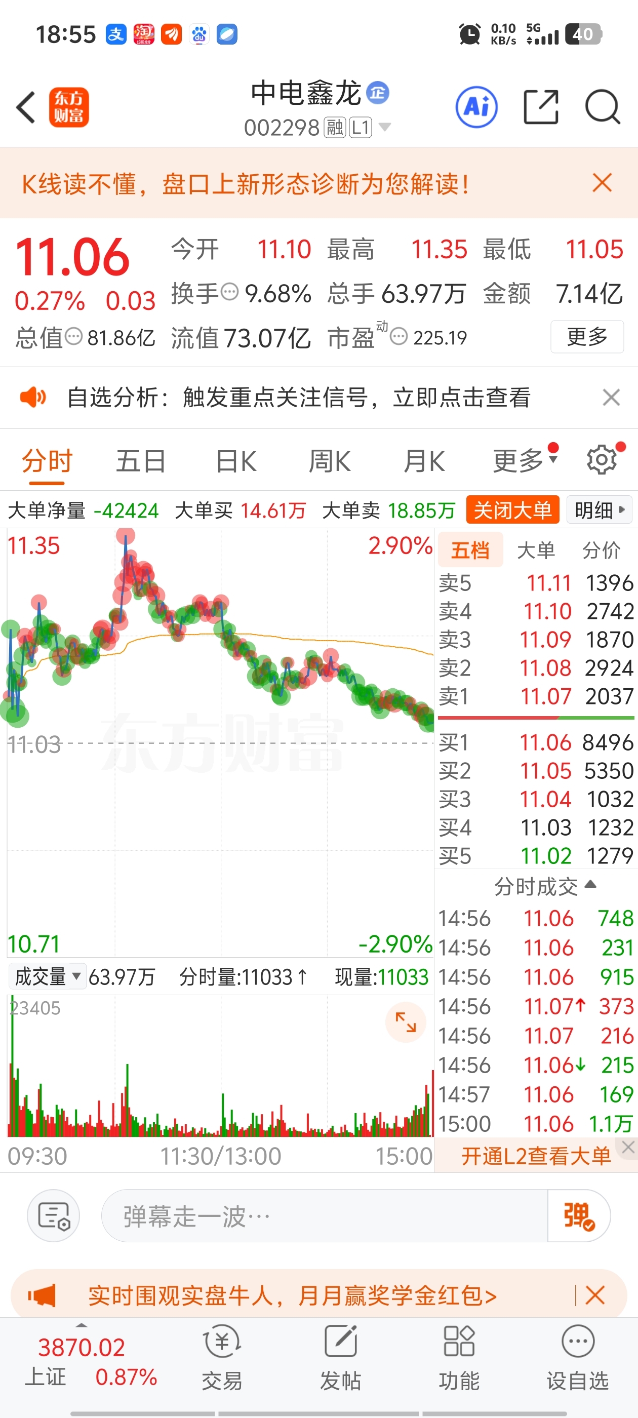 $中电鑫龙(SZ002298)$ 这是啥分时?