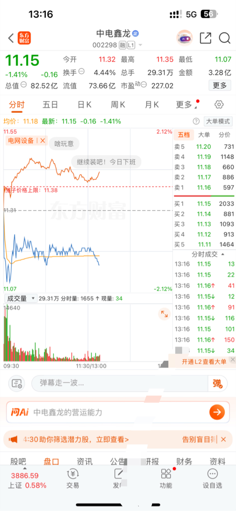 $中电鑫龙(SZ002298)$ 跟板块反着来?