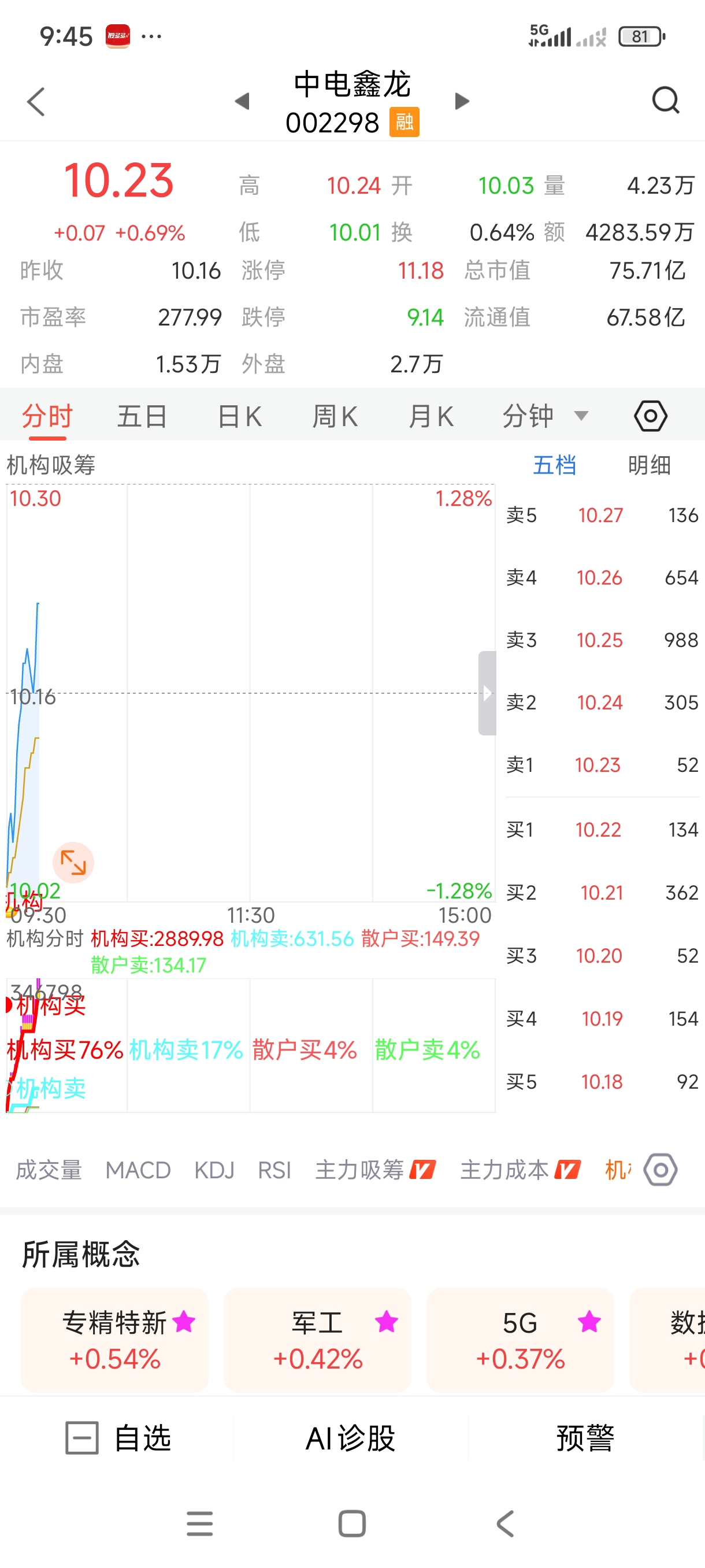 $中电鑫龙(SZ002298)$ 今天机构在买入,赶快上车