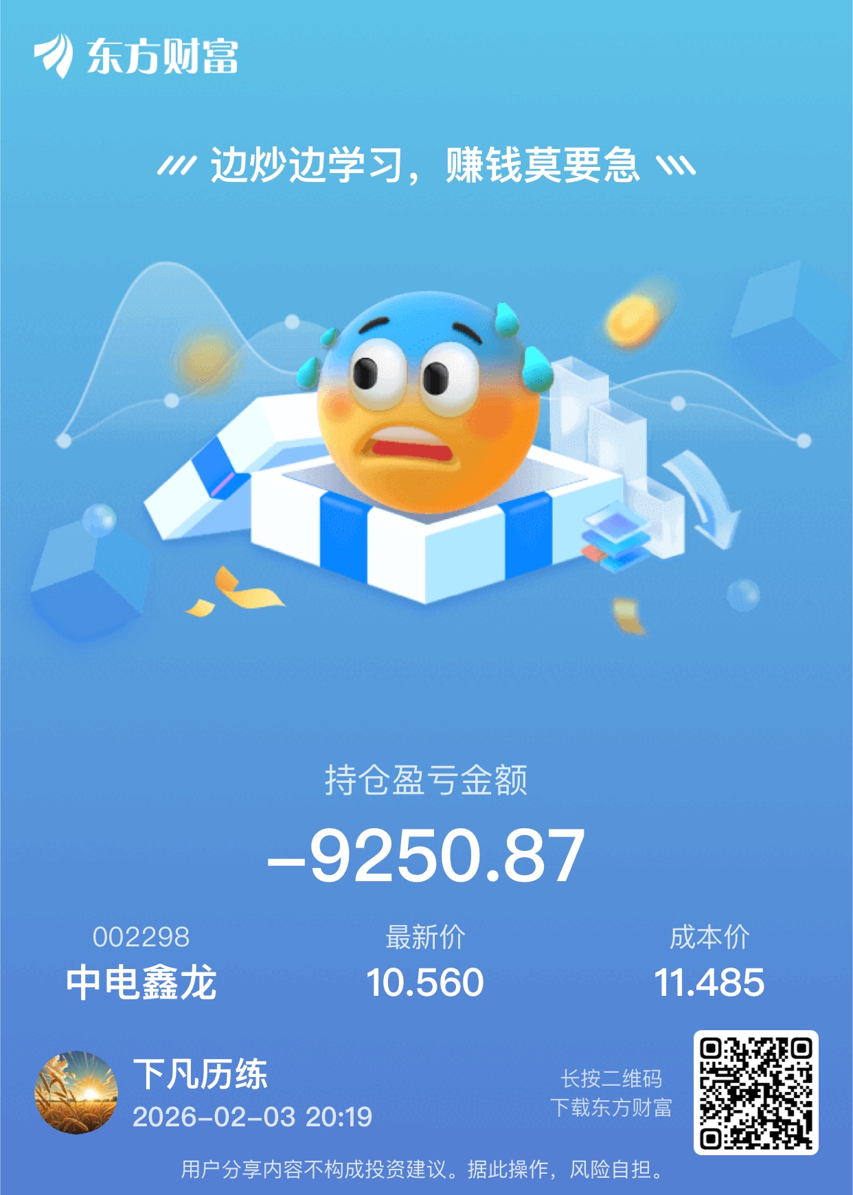 温馨提示: 1.根据《证券法》规定,禁止编造、传播虚假信息或者误导性信息,扰乱证券市场;2.用户在本社区发表的所有资料、言论等仅代表个人观点,与本网站立场无关,不对您构成任何投资建议。用户应基于自己的独立判断,自行决定证券投资并承担相应风险。《东方财富社区管理规定》