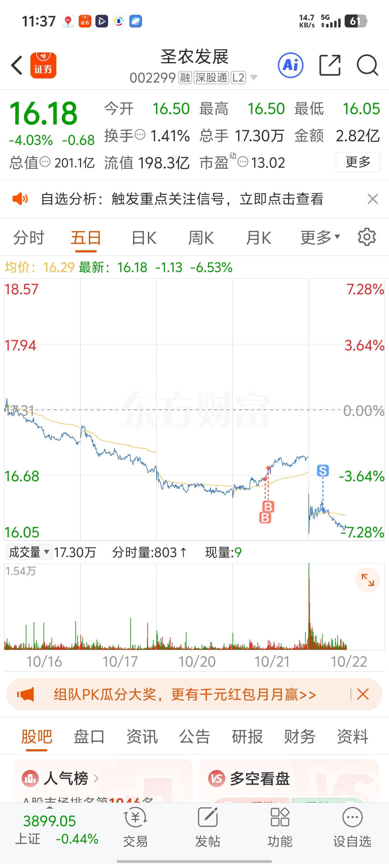 $圣农发展(SZ002299)$ 留下的发财