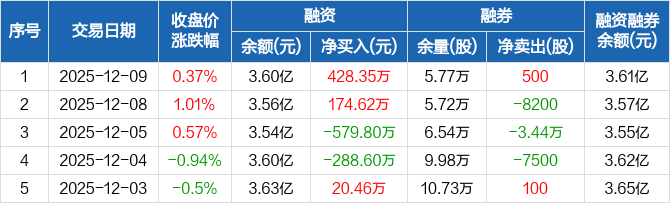 圣农发展:融资净买入428.35万元,融资余额3.6亿元(12-09)