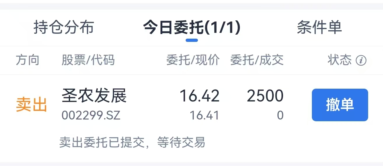 $圣农发展(SZ002299)$ 今天把分红钱买入的股数,卖出了