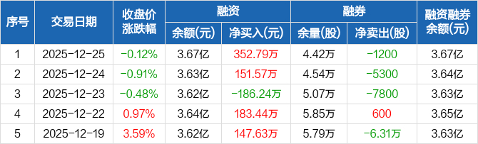 圣农发展:融资净买入352.79万元,融资余额3.67亿元(12-25)
