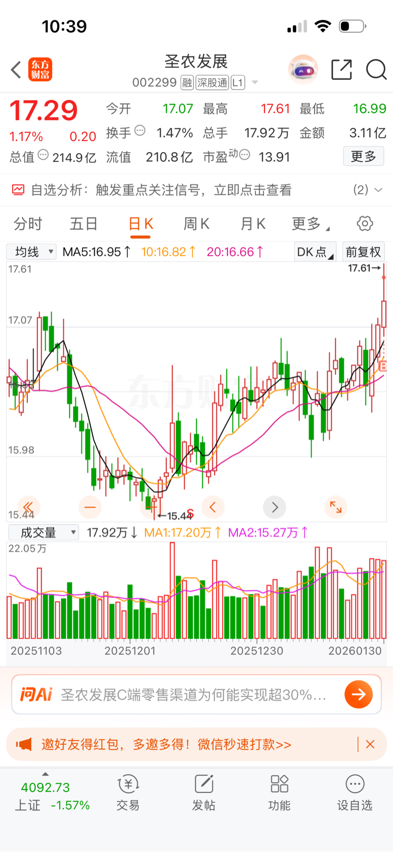 $圣农发展(SZ002299)$ 完啦,被挂山顶了