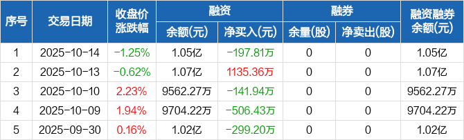 太阳电缆:融资净偿还197.81万元,融资余额1.05亿元(10-14)
