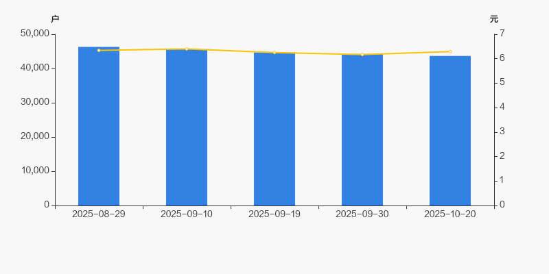 2025年8月29日至今,公司股东户数有所下降,区间跌幅为5.73%。2025年8月29日至2025年10月20日区间股价下降0.79%。