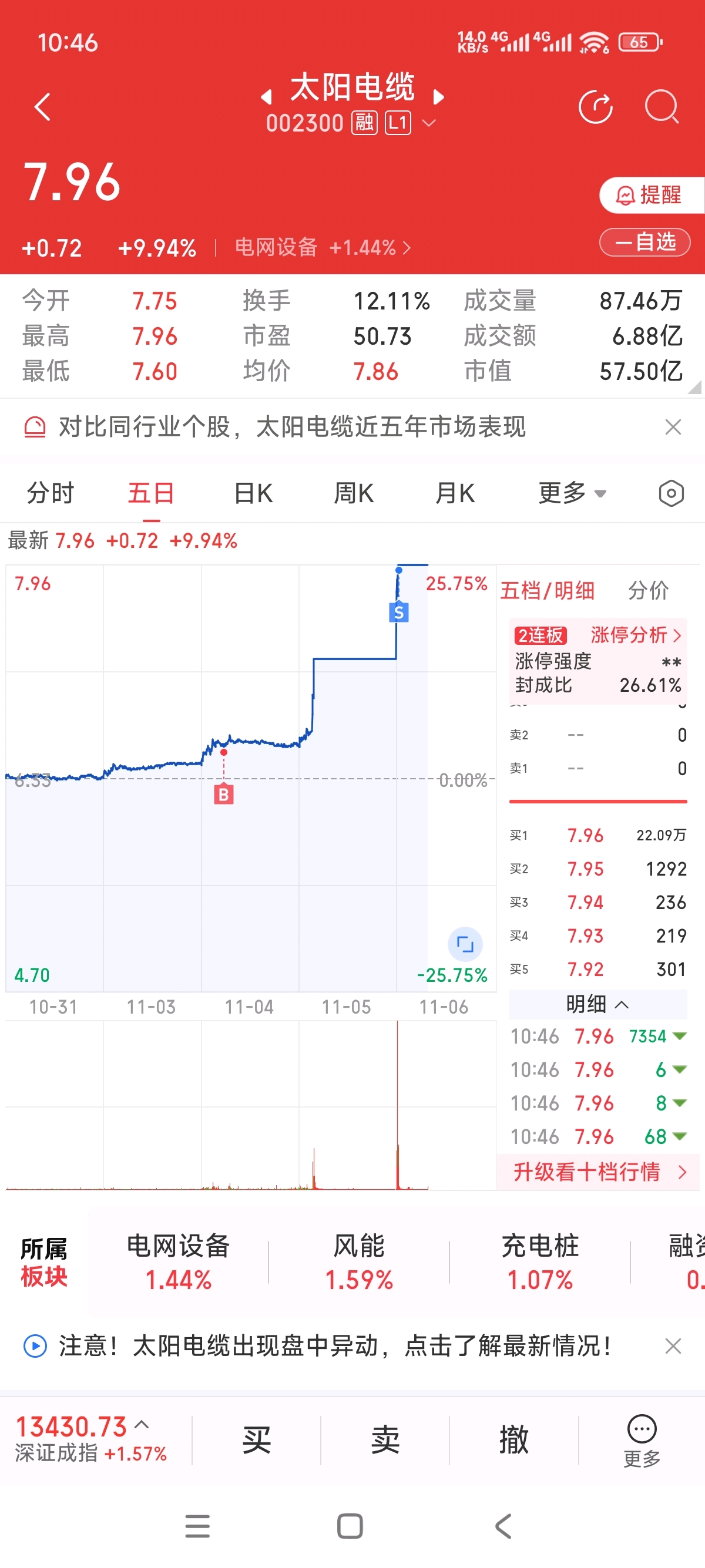 $太阳电缆(SZ002300)$ 还差一个涨停才转本先走一部分了,感觉摇摇欲坠,