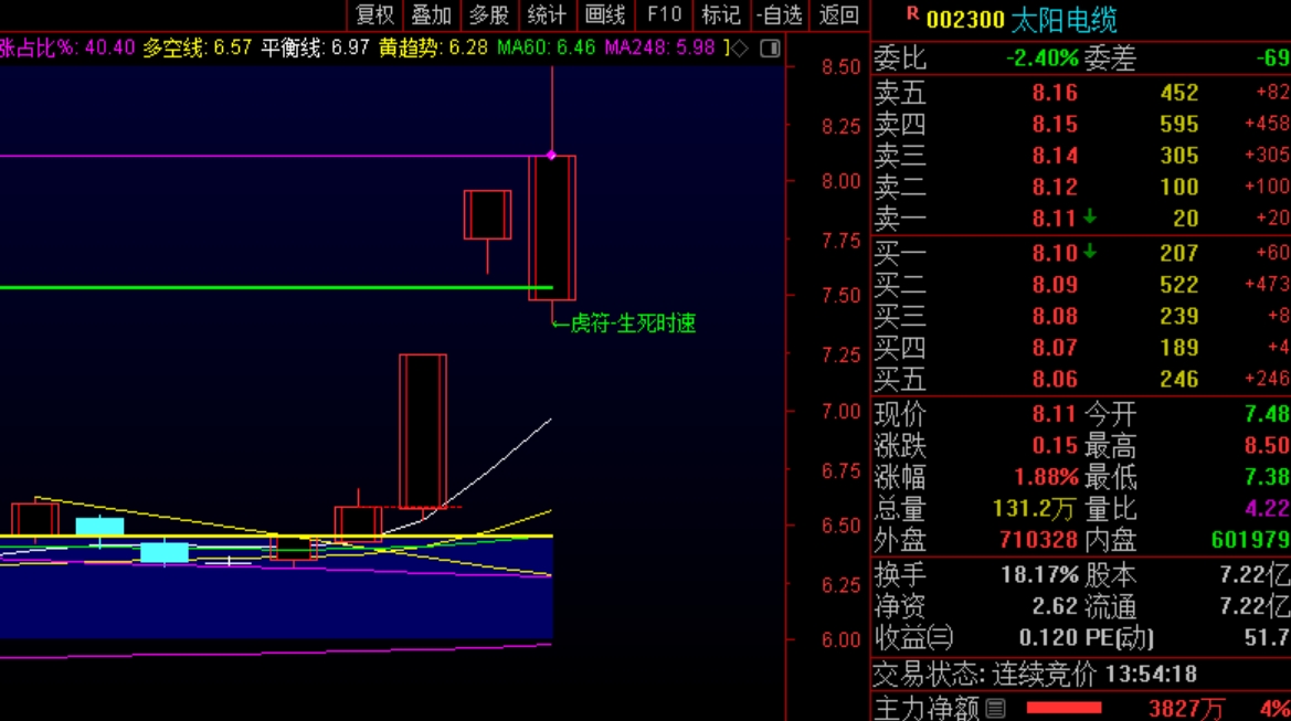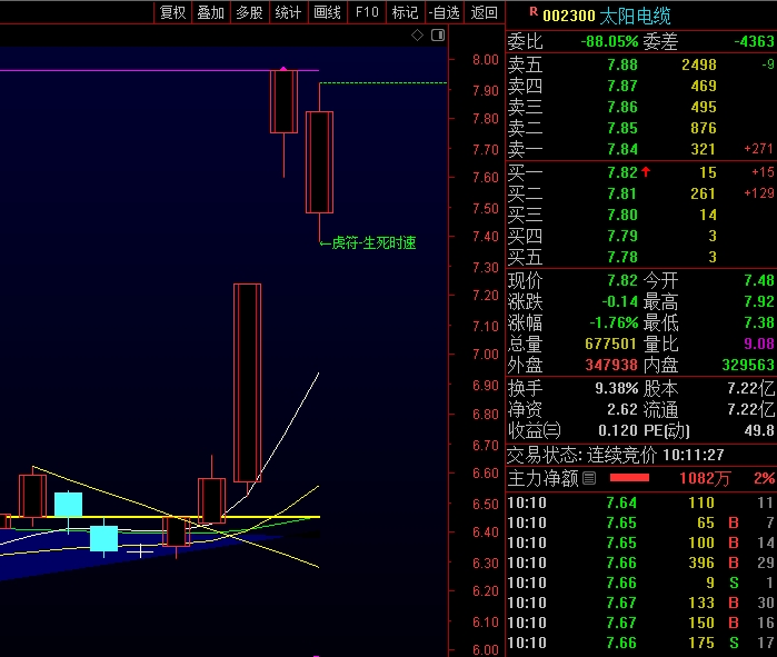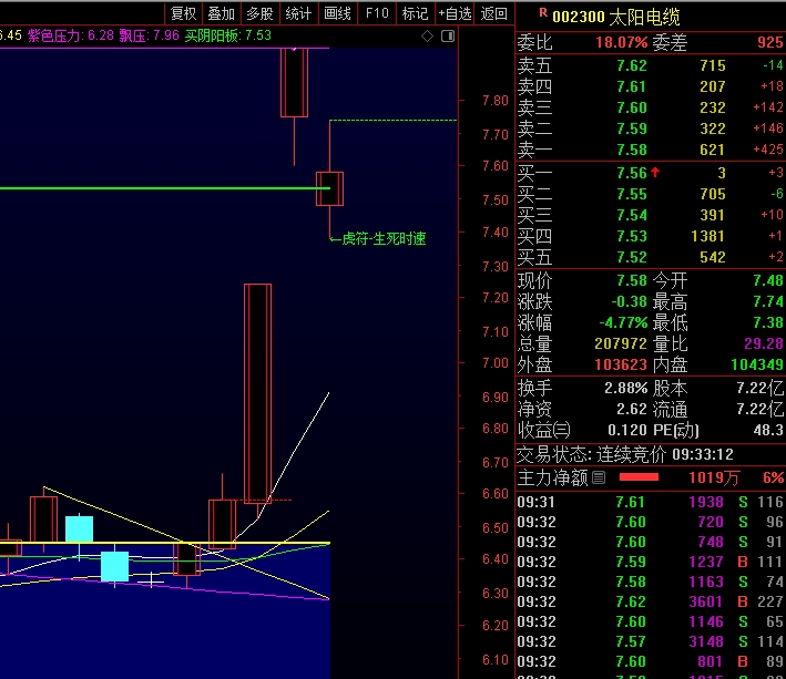 $太阳电缆(SZ002300)$ 太阳电缆7.50元附近买入一笔先