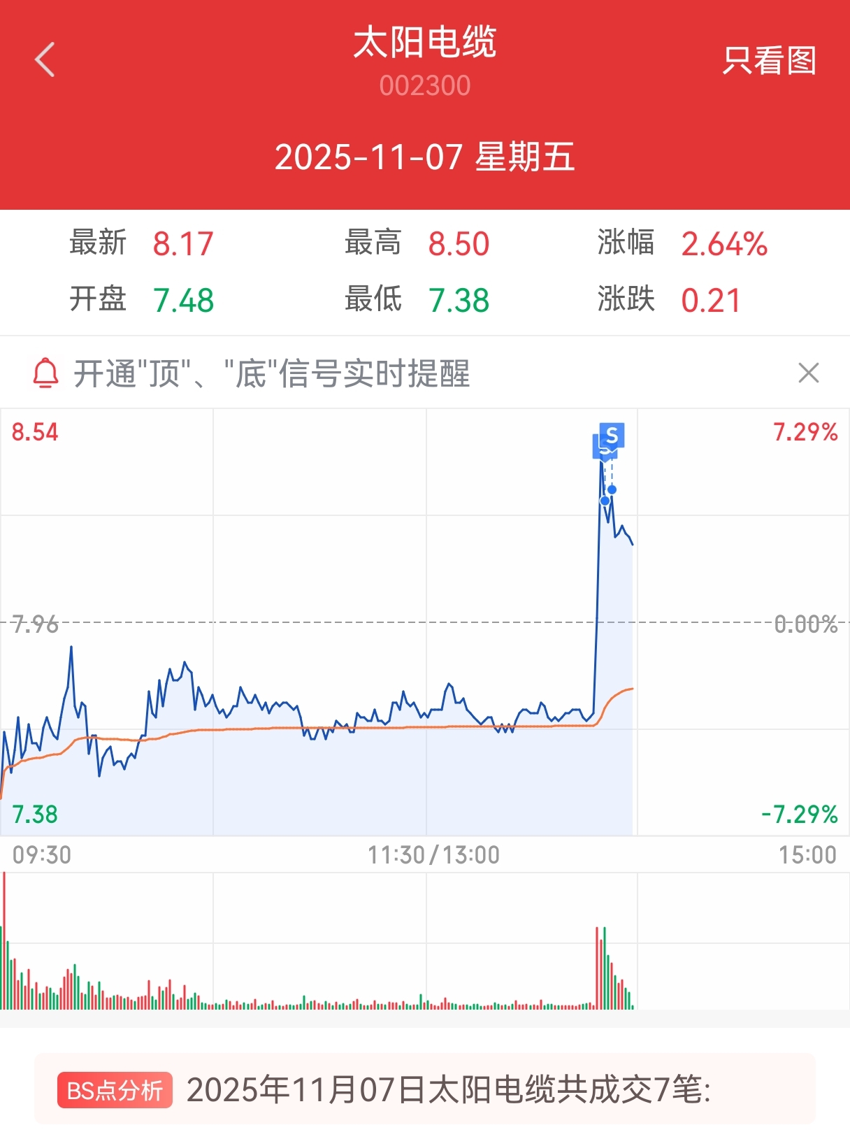 $太阳电缆(SZ002300)$ 拿了大半天终于等来了反抽,8.3全部获利了结了。昨天买入的就还剩$联德股份(SH605060)$ 还拿着,只要不跌破日内均线看看到尾盘是否也会来个太阳电缆一样的反抽。