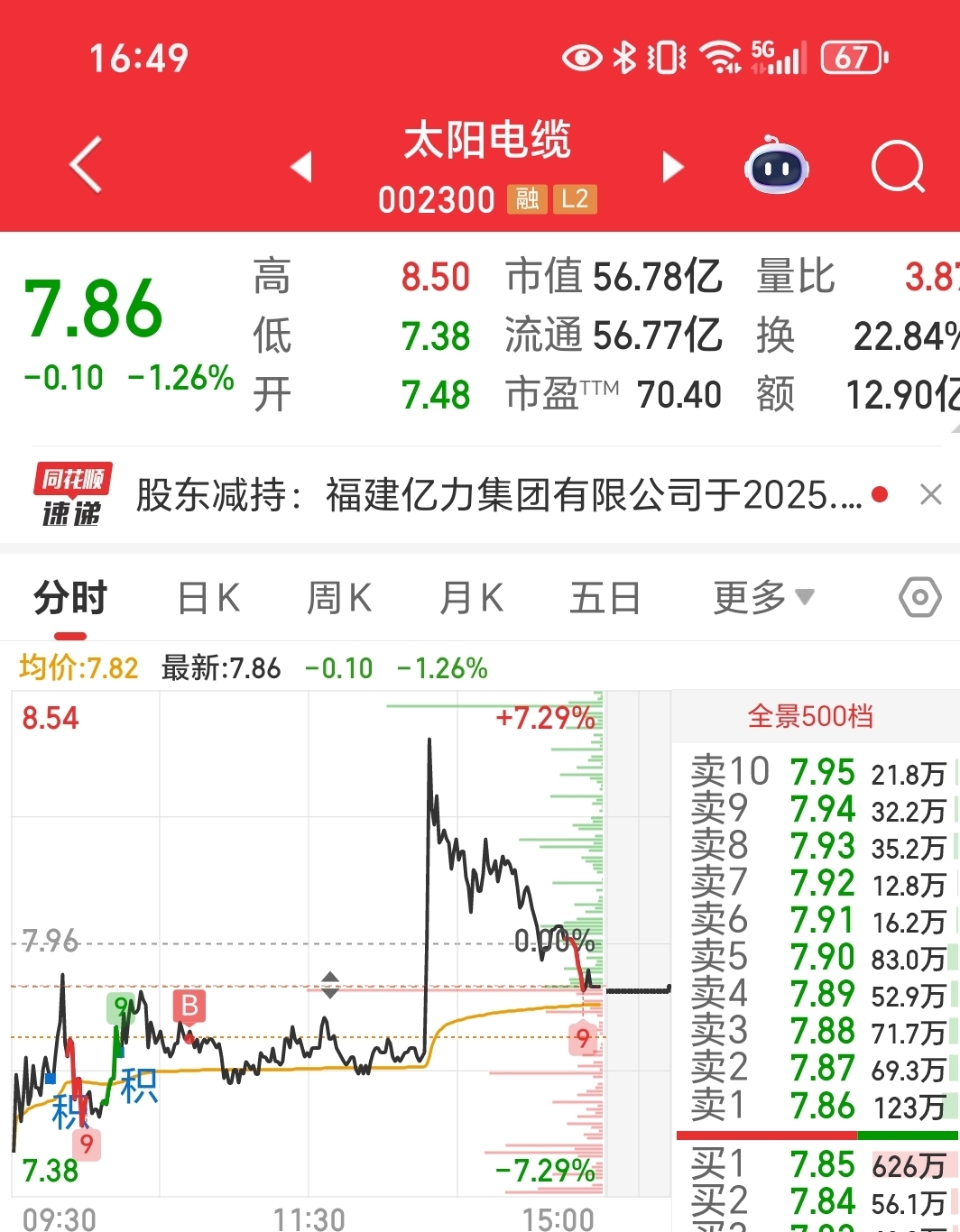 我这两天是啥运气啊,昨天碰到新能泰山,今天又遇上太阳电缆。看看昨天的新能泰山,买