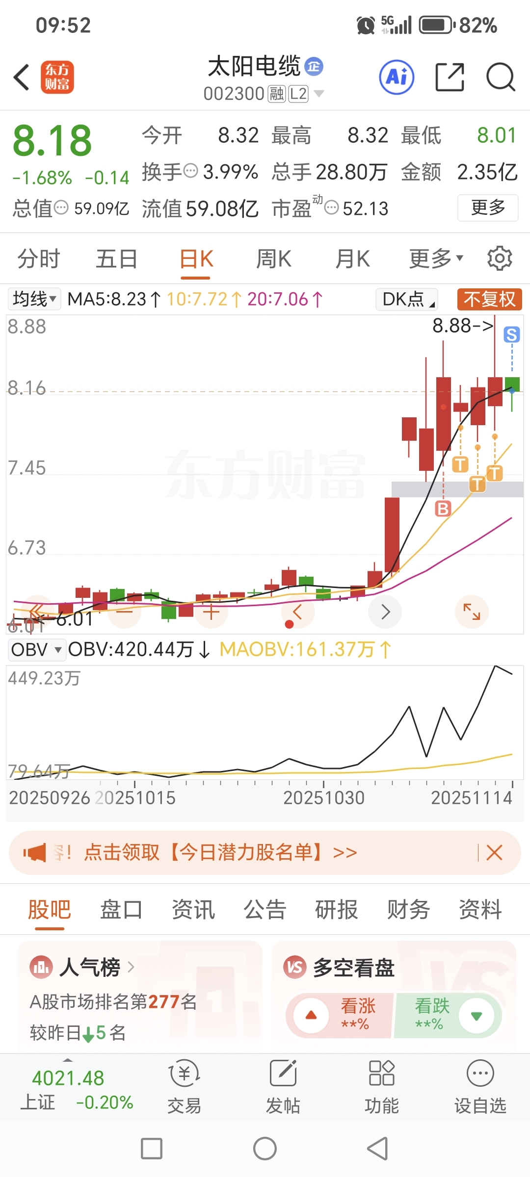 $太阳电缆(SZ002300)$ 今天走了,去低价股了。太阳后续还是不错。但是这几天上蹿下跳保住利润吧。一星期十五个点。祝愿大家大涨。