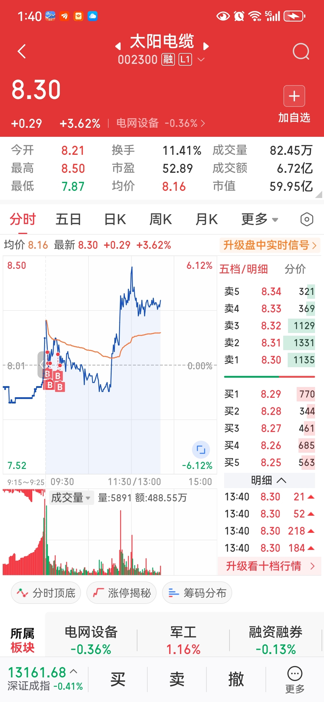 $太阳电缆(SZ002300)$ 买早了,nn个腿。