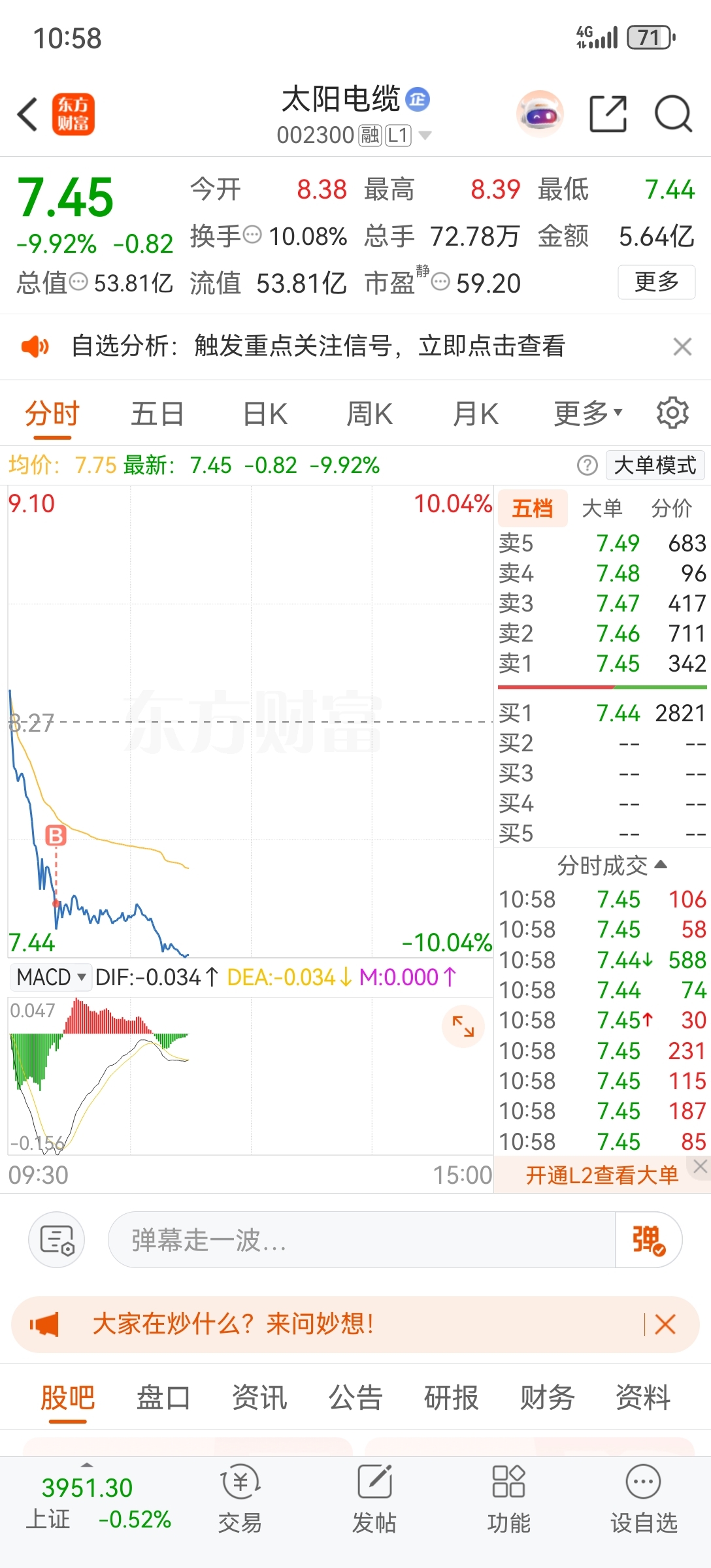 $太阳电缆(SZ002300)$ 加仓加在了大腿上