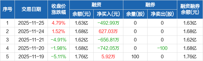 太阳电缆:融资净偿还492.99万元,融资余额1.63亿元(11-25)