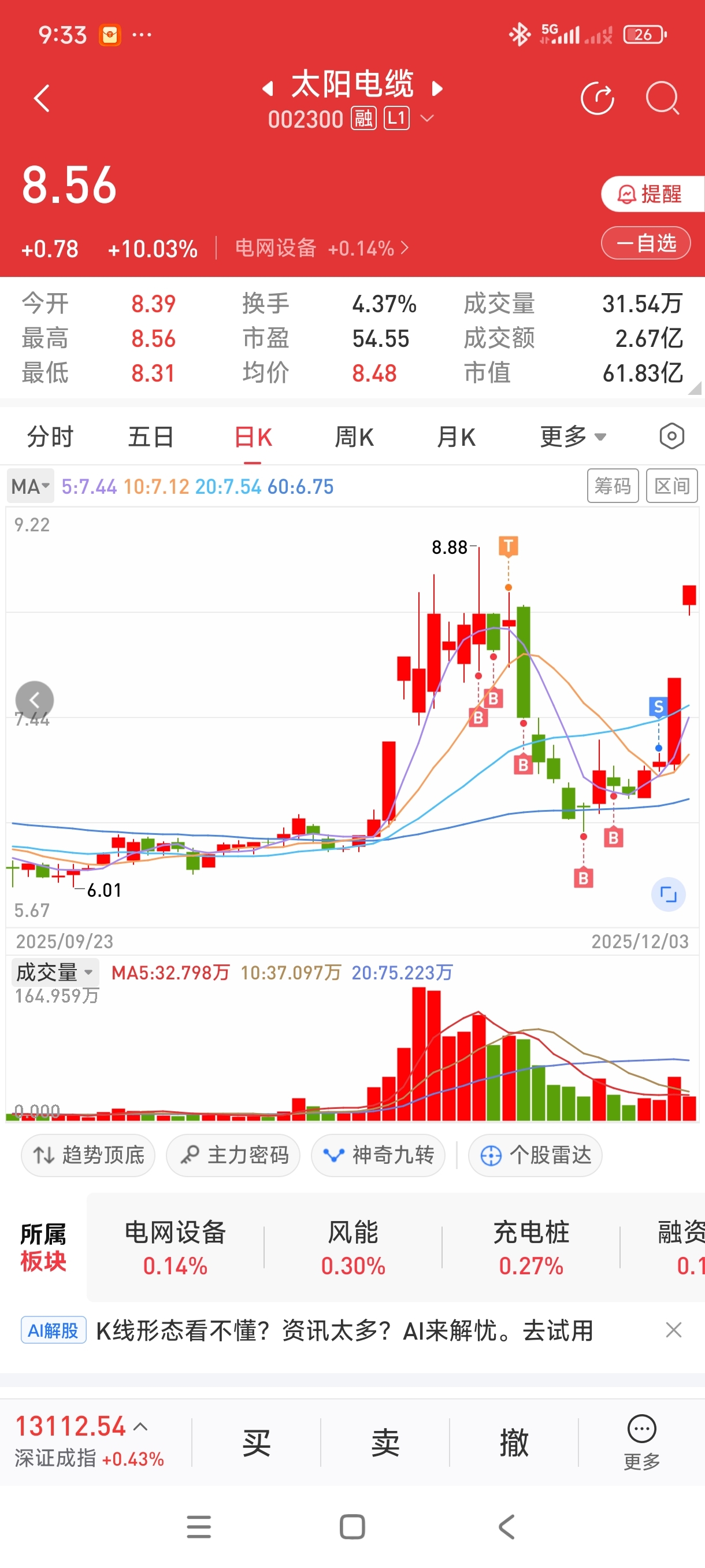 $太阳电缆(SZ002300)$ 大腿都拍肿了