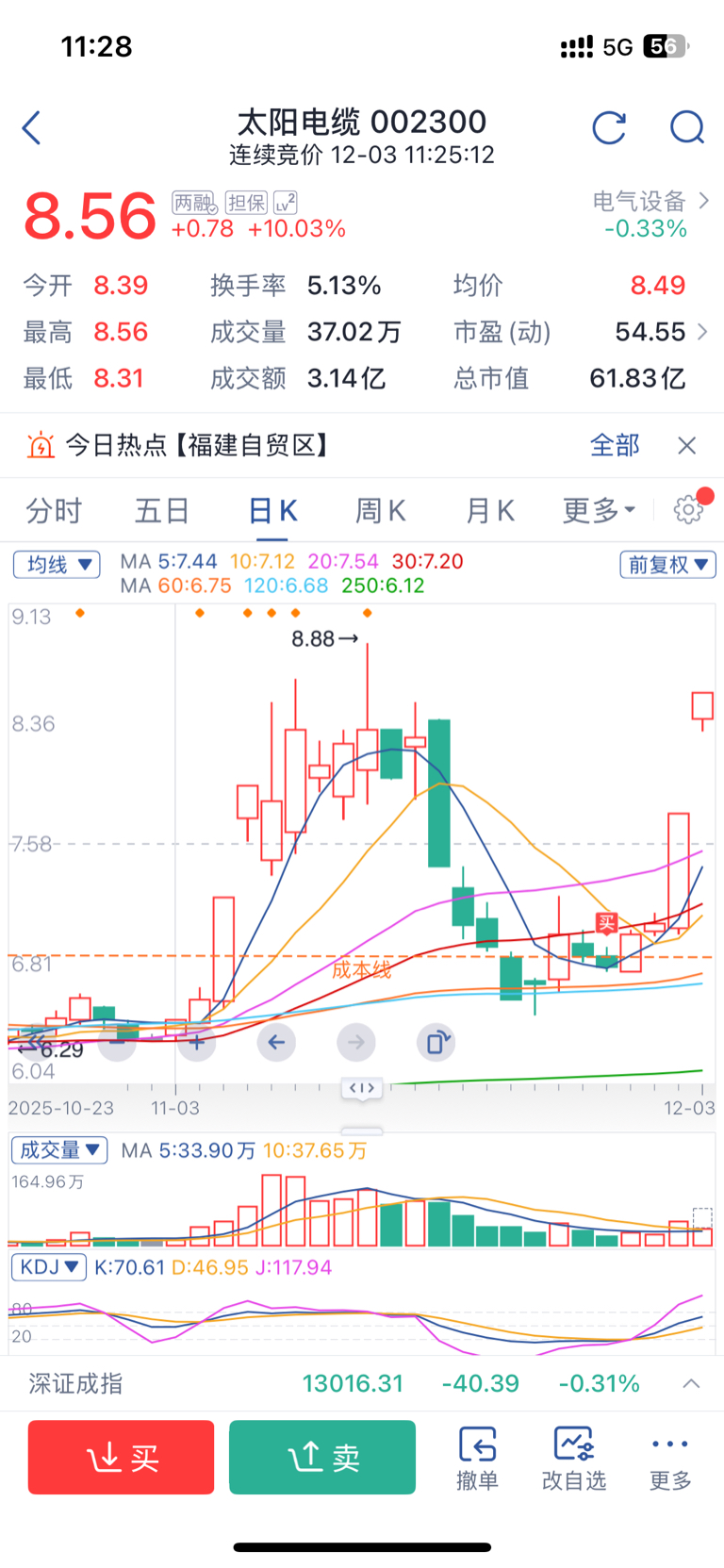 $太阳电缆(SZ002300)$ 打小就看着家伙有出息,毫不犹豫的低位持有!