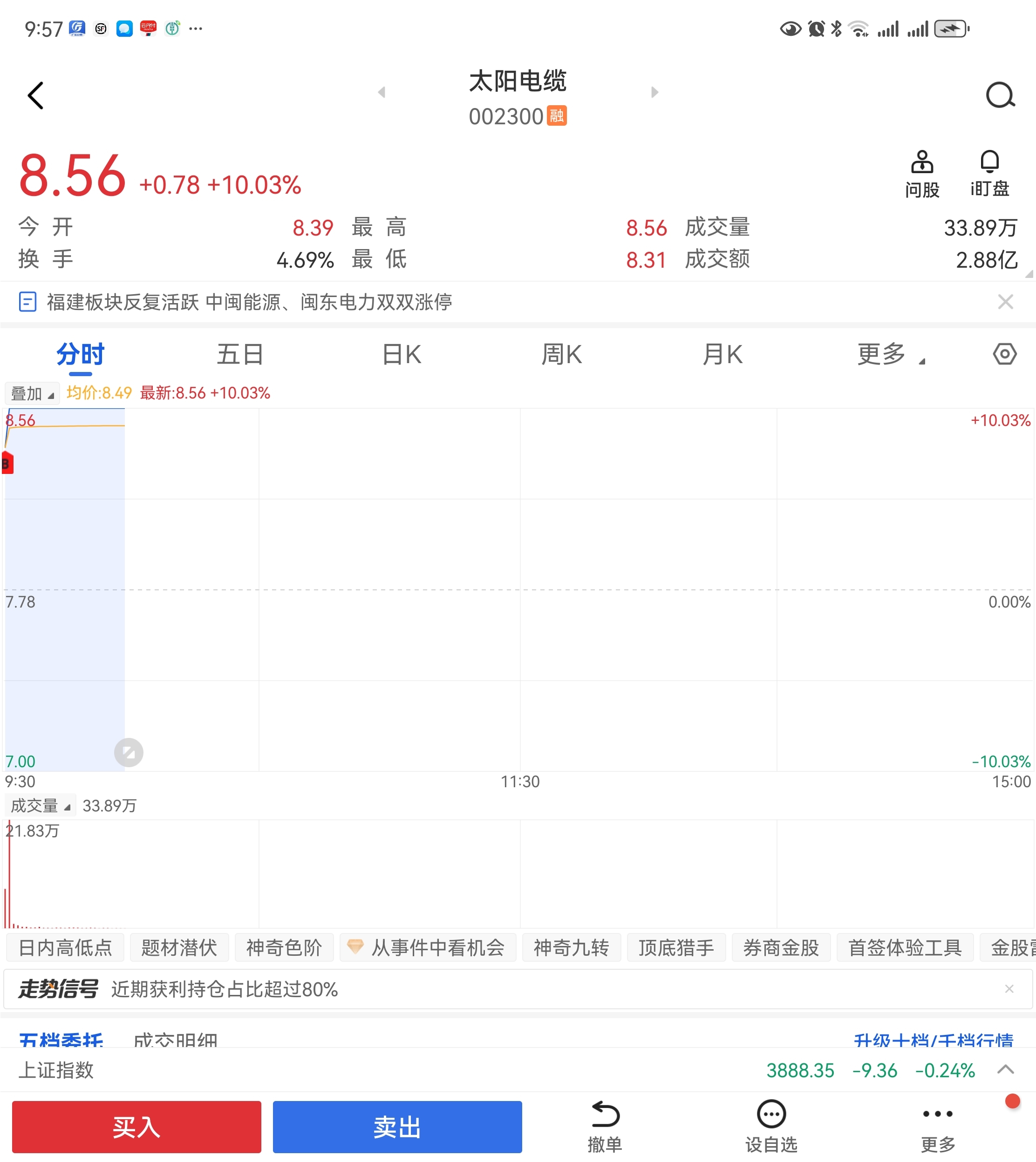 $太阳电缆(SZ002300)$ 一进二最靓仔。