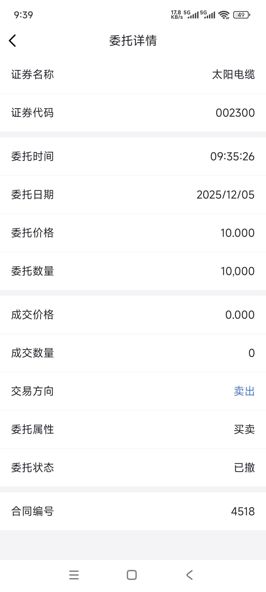 $太阳电缆(SZ002300)$ 摸到十块了没成交。。。。