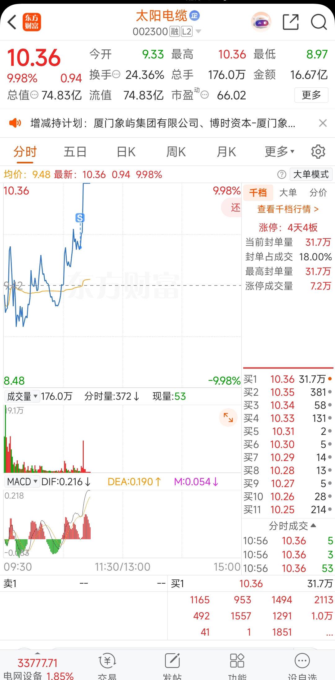 $太阳电缆(SZ002300)$ 我点的火,不谢,就差我那点。